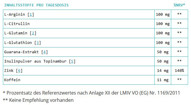 - Gevoelige personen kunnen reageren op cafeïne/guarana; neem bij twijfel contact op met uw arts.